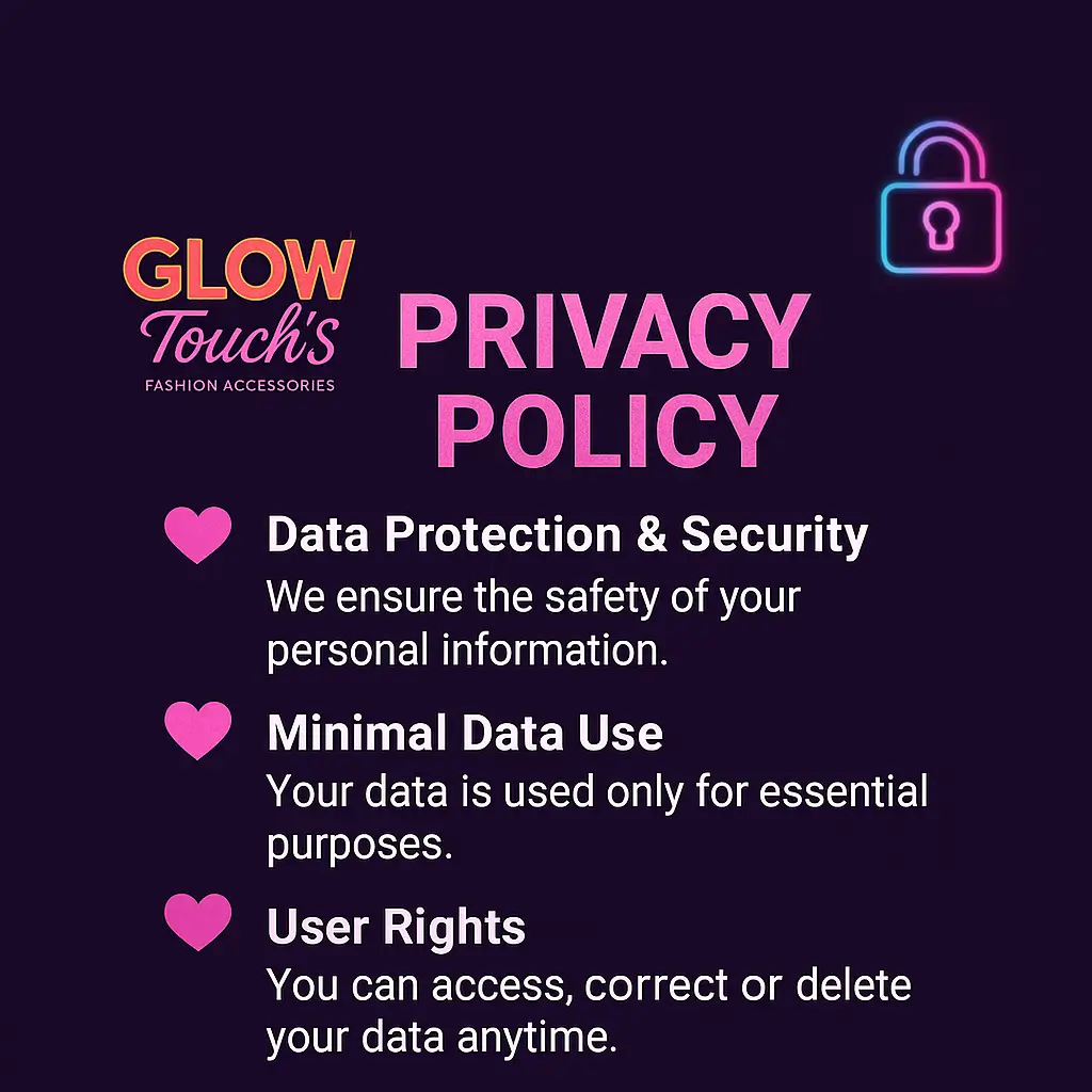 স্বাগতম GLOW Touch’S-এর অফিসিয়াল প্রাইভেসি নীতিতে। আমরা বিশ্বাস করি, তোমার বিশ্বাসই আমাদের সবচেয়ে মূল্যবান সম্পদ। তাই তোমার ব্যক্তিগত তথ্যের সুরক্ষা আমাদের সর্বোচ্চ অগ্রাধিকার। এই নীতি ব্যাখ্যা করে কীভাবে আমরা তোমার তথ্য সংগ্রহ, ব্যবহার, সংরক্ষণ ও সুরক্ষা করি — এবং তুমি কিভাবে এই তথ্য ব্যবহারের ওপর নিয়ন্ত্রণ রাখতে পারো।